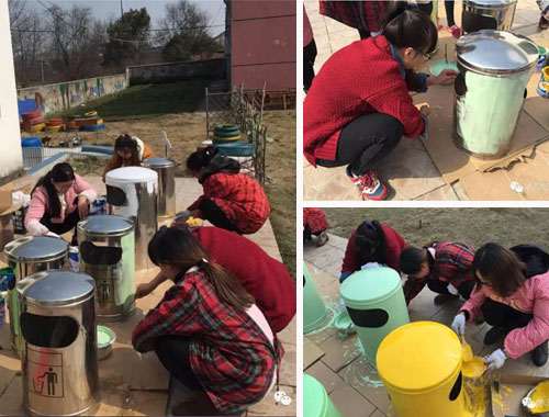 為了進(jìn)一步提升校園文化,創(chuàng)建更加優(yōu)美的育人環(huán)境,推動(dòng)幼兒園建設(shè)朝著凈化、美化、規(guī)范化的方向發(fā)展,幼兒園青年教師對(duì)園內(nèi)垃圾桶進(jìn)行美化、裝飾。 教師們先選稿、討論設(shè)計(jì)方案,再畫底稿,最后調(diào)油漆上色。經(jīng)過(guò)老師們的巧手布置,原本單調(diào)呆板的垃圾桶一個(gè)個(gè)鮮活起來(lái)。孩子們來(lái)園看到一個(gè)個(gè)五彩繽紛的垃圾桶興奮極了,非常樂(lè)意把垃圾撿起來(lái)扔進(jìn)漂亮的垃圾桶里。 據(jù)悉,本次活動(dòng)是該園繼設(shè)計(jì)創(chuàng)意家園聯(lián)系欄、廢舊輪胎變廢為寶、裝飾走廊墻飾等活動(dòng)后的又一次環(huán)境創(chuàng)新活動(dòng)。這些活動(dòng)不僅有效促進(jìn)了該園教師環(huán)境創(chuàng)設(shè)理念的更新、提升了創(chuàng)設(shè)技能和品位,同時(shí)促進(jìn)了教師之間的相互學(xué)習(xí),認(rèn)識(shí)到了環(huán)境創(chuàng)設(shè)對(duì)幼兒發(fā)展的價(jià)值,更為自己積累了有益的經(jīng)驗(yàn),為以后更好的開展環(huán)境創(chuàng)設(shè)打下堅(jiān)實(shí)的基礎(chǔ)。