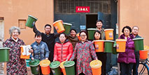 “每戶分給一個(gè)橙色桶和一個(gè)綠色桶。綠色桶用來盛廚余垃圾,橙色桶用來盛其他生活垃圾,每種顏色的桶配一卷同顏色的垃圾袋。另外還有一本垃圾桶分類指導(dǎo)手冊(cè)...
