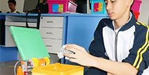 用卡紙包裝的方形桶裝外觀,樂高積木砌成的支架。這樣看似其貌不揚,甚至是簡陋的垃圾桶,雙手靠近時,卻能感應(yīng),并迅速自動打開垃圾桶蓋;當(dāng)垃圾桶內(nèi)水果皮、廚...